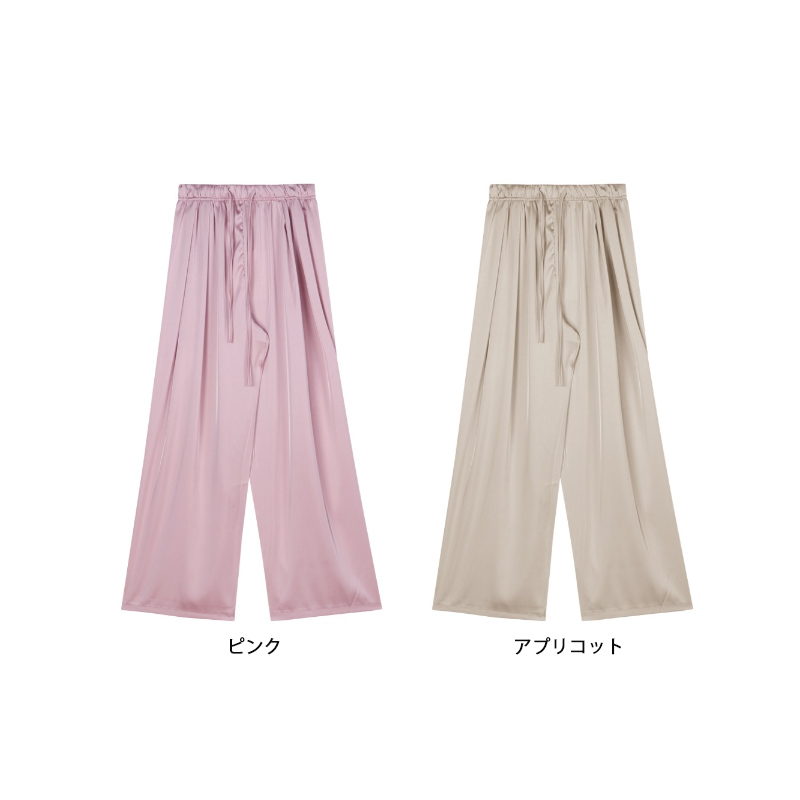 ひんやり接触冷感素材で快適なサテン調ワイドパンツです。