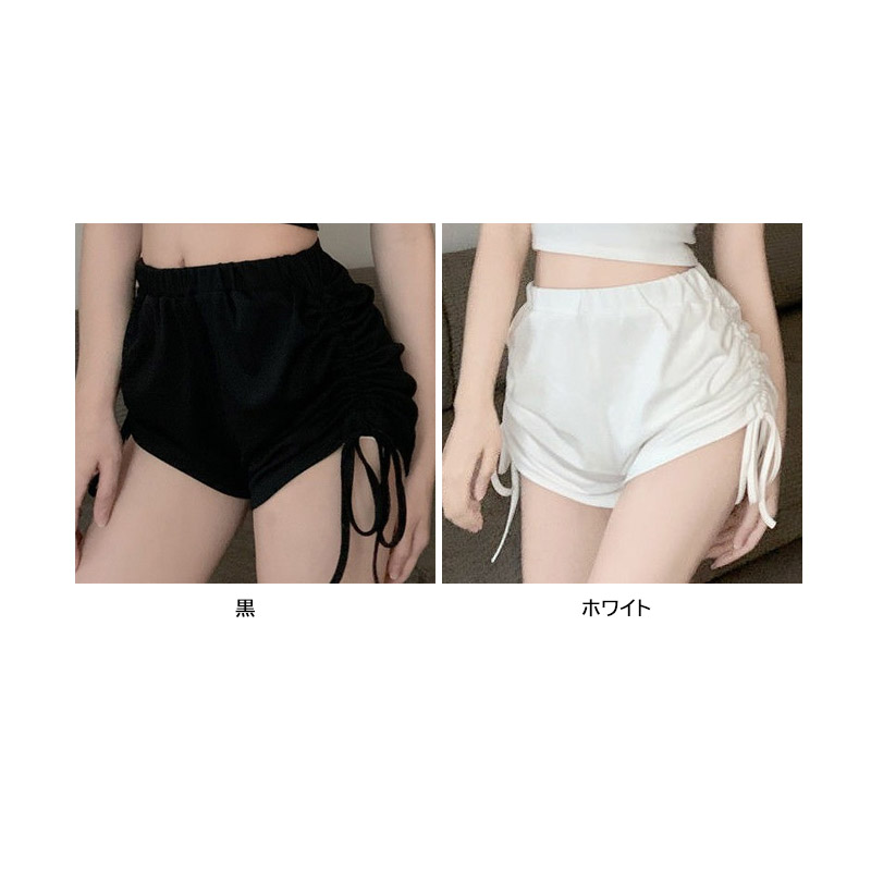 ■コメント ・レディースのショートパンツ。 ・サイドにシャーリングの効いたデザイン。 ・美尻を演出できます。 ・ゴムウエストでゆったり楽ちんなのでルームウェアにオススメです。 ■サイズ(単位:約cm) S ヒップ約92 パンツ長さ約37 M ヒップ約96 パンツ長さ約38 L ヒップ約100 パンツ長さ約39 XL ヒップ約104 パンツ長さ約40 2XL ヒップ約108 パンツ長さ約41 ■カラー 画像に記載あり ■伸縮性 あり ■裏地 なし ■生地の厚さ 薄め ■透け感 ホワイト:あり ■素材 ポリエステル90%、ナイロン10% ■包装状況 OPP袋