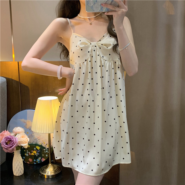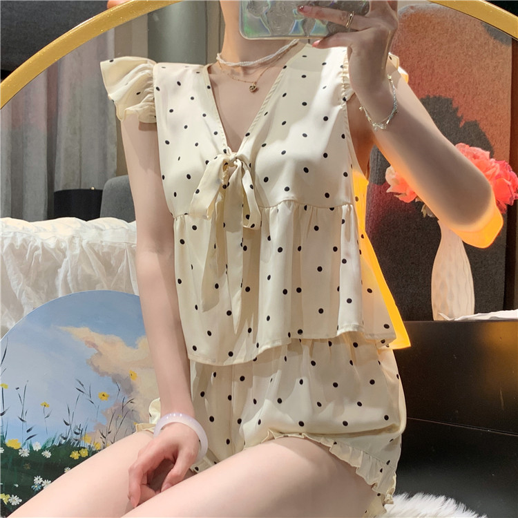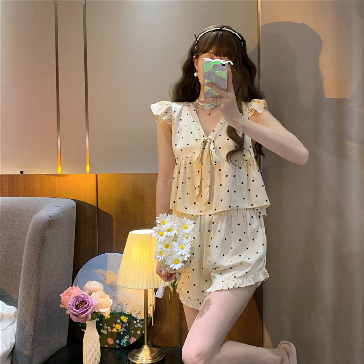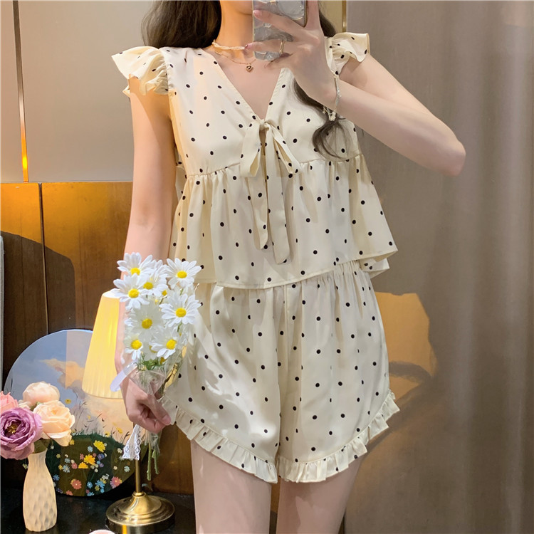 夏にぴったりの涼しげなドット柄が魅力的なレディース ルームウェアです。