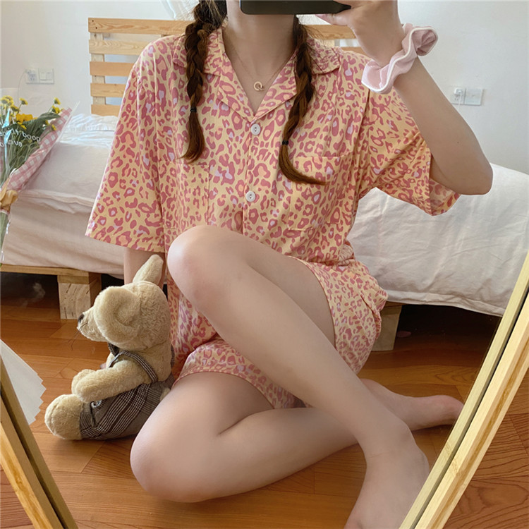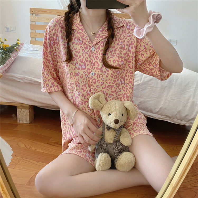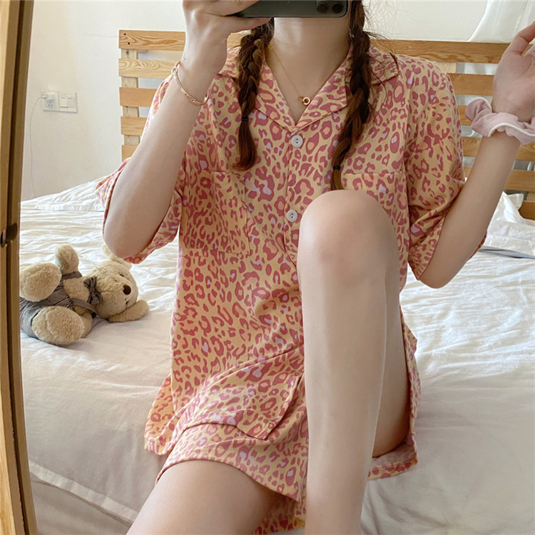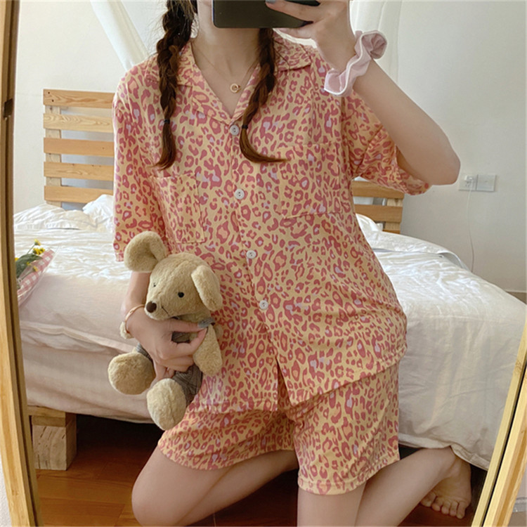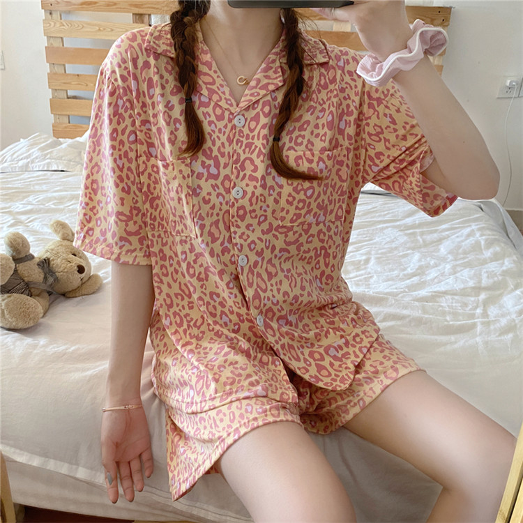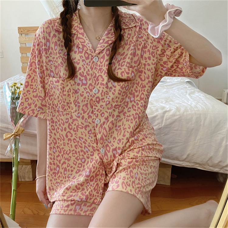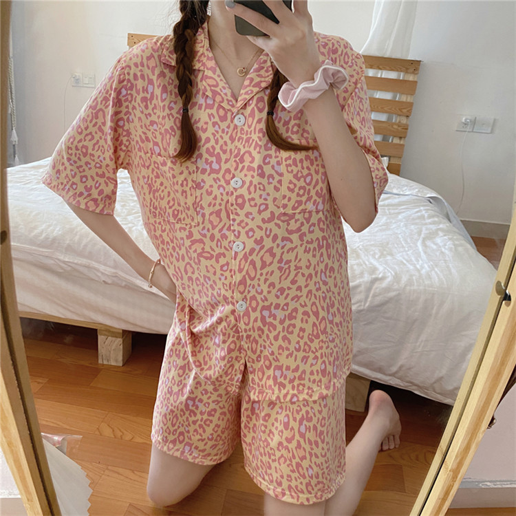 可愛いレオパード柄がおしゃれな半袖パジャマの2点セット。